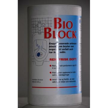 Bio Block avger en fräsch doft av citron och finns burkar innehållande 25 st. block.
