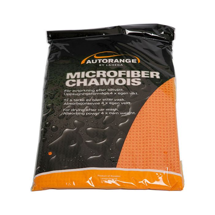 Autorange Microfibre Chamois är en modern microfiberduk av hög kvalité för avtorkning av blöta bilar efter tvätt. Microfiberduken har extrem hög uppsugningsförmåga och används på motsvarande sätt som det traditionella sämskskinnet. Ger ej upphov till flammighet och är mycket skonsam mot bilens lack.