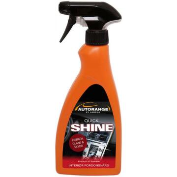 Autorange Quick Shine är ett vattenbaserat glansmedel för uppfräschning och skydd av fordons vinyl-, plast och gummiytor. Ger glans åt instrumentpaneler, dörrsidor, stötfångare, däcksidor mm. Utmärkt även för skydd av nytvättade motorutrymmen.