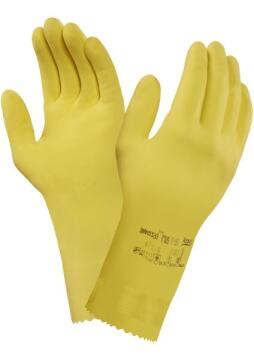 Kemskyddshandske i latex med flossad insida. Tjocklek 0,40 mm. Längd 30,5 cm. CE Kategori 3. Betyg enligt EN-388 1010. Godkänd enligt EN-374. Godkänd för hantering av livsmedel.